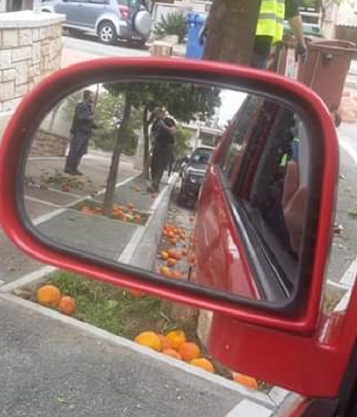 Και πρόσθεσε: "Η υπηρεσία σηκώνει τα χέρια ψηλά... 18.000 νεραντζιές μπορούν να τα μαζέψουν οι εργαζόμενοι στο Δήμο;... Να το δει η πόλη..."