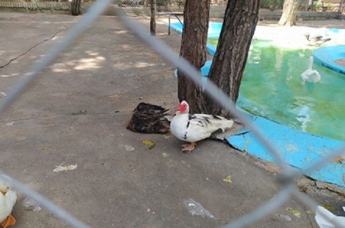 "Εξαθλιωμένα πτηνά, τραυματισμένα, ανήμπορα, που σιτίζονται με junk food από τους επισκέπτες, ξεπουπουλιασμένα, υπέρβαρα, βαμμένα με μπογιά, με τραυματισμένα ράμφη από τα κάγκελα, σε ένα χώρο ακατάλληλο και βρώμικο, με ακαθαρσίες οι οποίες δεν μαζεύονται τακτικά, σάπια φρούτα και πούπουλα στα κάγκελα των κλουβιών".