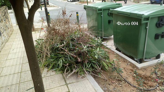Με θέσεις κάδων σκουπιδιών που πρόσβαση έχουν μόνο από το οδόστρωμα εγκυμονώντας κίνδυνο για ατυχήματα από διερχόμενα αυτοκίνητα και όχι από το πεζοδρόμιο όπως θα ήταν το φυσιολογικό. Φωτό 004