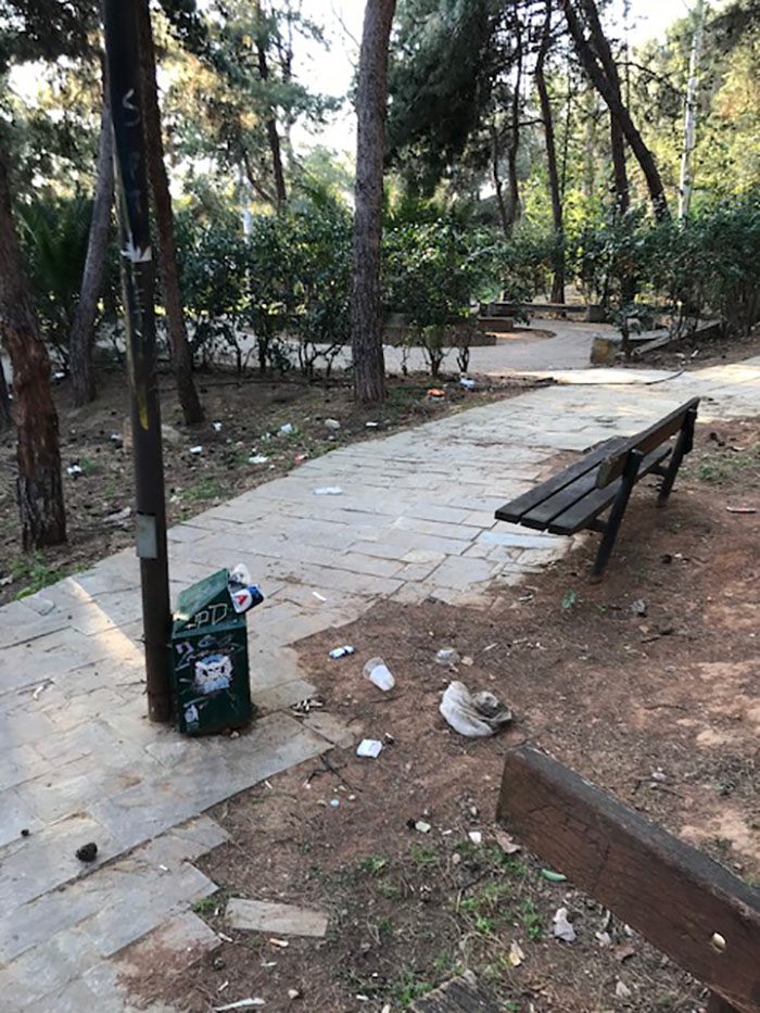 Μηνύματα και φωτογραφίες έφτασαν στο myxolargos/mypapagos.gr για την κατάσταση που βρίσκεται το πάρκο Ευρώπης πάνω από το τέρμα των λεωφορείων στον Άνω Χολαργό. Εγκατάλειψη με σπασμένα φωτιστικά και καλαθάκια, βρωμιά με σκουπίδια πεταμένα παντού και λόγω των ημερών και του επετειακού έτους και μία σημαία.