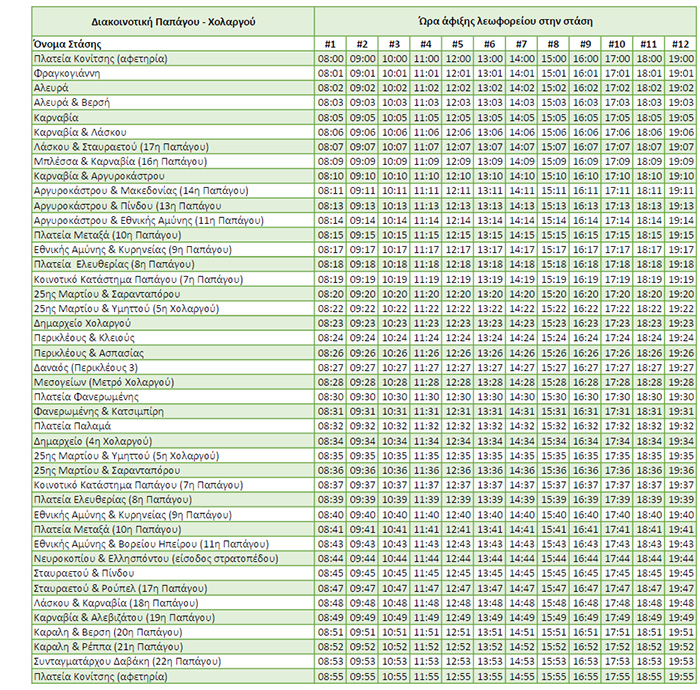 Συγκεκριμένα, το δρομολόγιο της δημοτικής συγκοινωνίας που ξεκινά από την Πλατεία Κονίτσης της Κοινότητας Παπάγου στις 08:00, ανά μία ώρα θα έχει ως τελευταίο στις 19.00μμ.