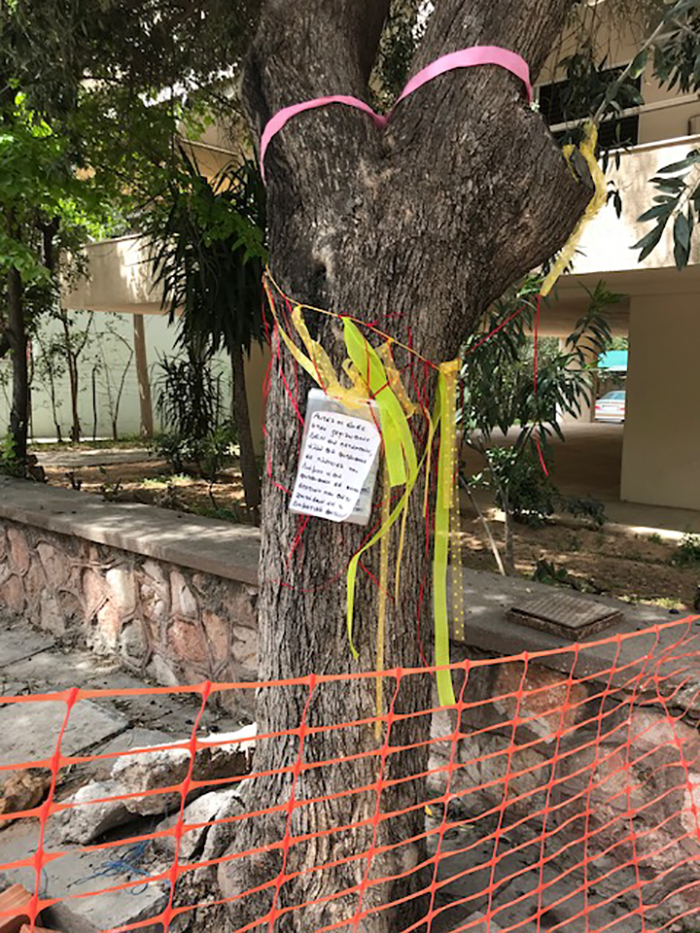 Έτσι η αντίδραση έφερε... έμπνευση. Και εκτός από τις διαμαρτυρίες και τις καταγγελίες τόσο στις υπηρεσίες του Δήμου, όσο και στα social media, τώρα η αντίδραση πήρε χρώμα και κατέλαβετο πεζοδρόμιο. Με τα ελαιόδεντρα να γεμίζουν κορδέλες, χρώματα και μηνύματα σε μία κίνηση ευαισθητοποίησης από τους περίοικους, λίγο πριν αναλάβει ο εργολάβος να τα απομακρύνει.