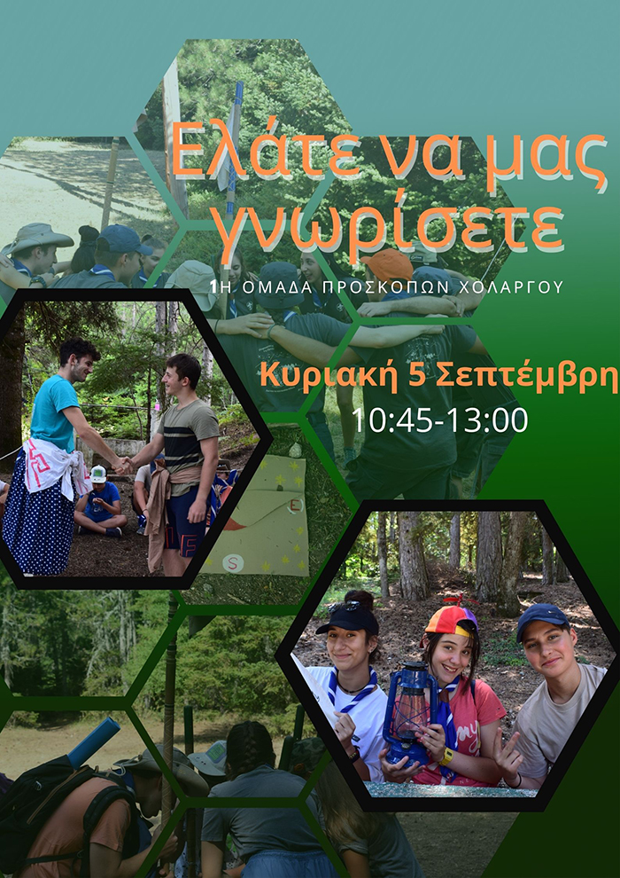 Αυτή την Κυριακή 5 Σεπτέμβρη, η ομάδα του 1ου Συστήματος Προσκόπων Χολαργού ξεκινάει με μια δράση έκπληξη! Προσκαλώντας όλα τα παιδιά έκτης Δημοτικού εώς και τρίτης Γυμνασίου, μέλη του συστήματός αλλά και νέα παιδιά που θέλουν να μάθουν το προσκοπικό παιχνίδι, για μια αξέχαστη δράση!