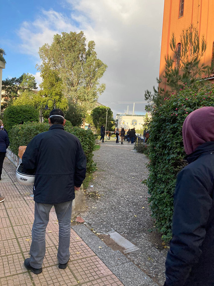 Ακόμη και πολύ πριν τις 9.00 πμ που είχε ανακοινωθεί η έναρξη, η ουρά είχε κάνει την μισή περίμετρο της εκκλησίας και ανέβαινε προς Φανερωμένης! Περαστικοί που δεν ήξεραν απορούσαν τι είχε συμβεί...
