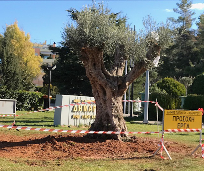 Ένα "νέο" αιωνόβιο ελαιόδεντρο κοσμεί πλέον τον εξωτερικό χώρο του Δημαρχείου Παπάγου Χολαργού επί της οδού Περικλέους. Το δέντρο που μεταφυτεύθηκε στο σημείο αποτελεί όπως φαίνεται μία από τις "εκπλήξεις" που ο Δήμαρχος είχε υποσχεθεί στους διαμαρτυρόμενους δημότες ένα χρόνο πριν που με έγγραφη επιστολή τους είχαν προκαλέσει θέμα συζήτησης στο Δημοτικό Συμβούλιο με αφορμή το κόψιμο δεκάδων ελιών από τα υπό διαμόρφωση έργα ανάπλασης της οδού Βουτσινά.