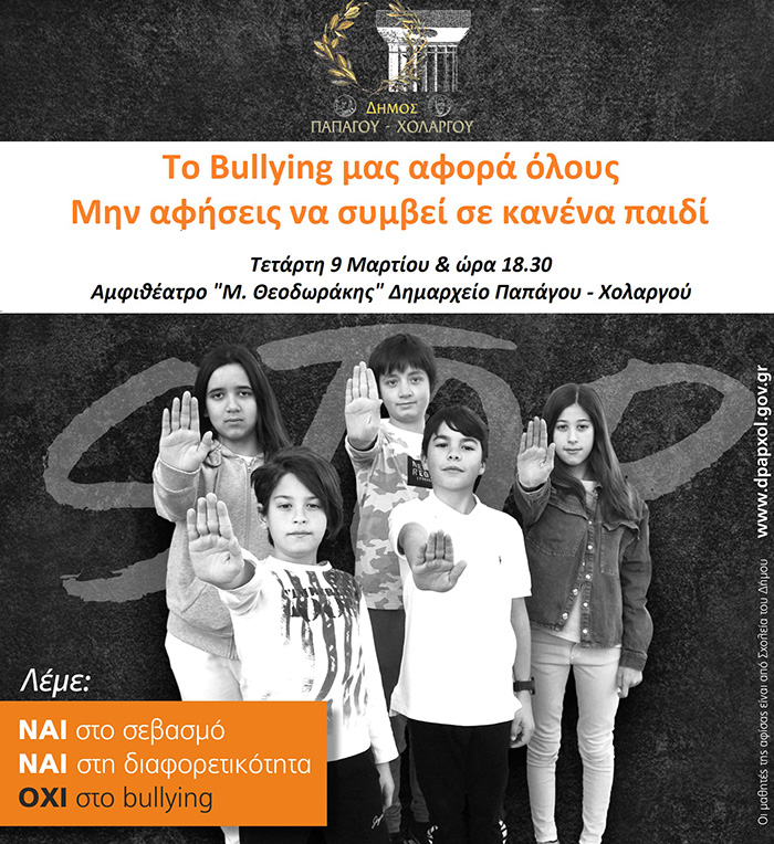 Μήνας ευαισθητοποίησης ο Μάρτιος για το bullying στο Δήμο Παπάγου Χολαργού