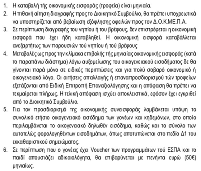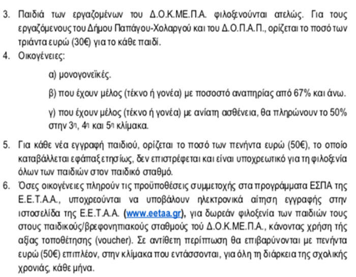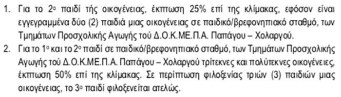 Ωστόσο ορίστηκαν τα κριτήρια και για περιπτώσεις μειώσεων ή απαλλαγών των τροφείων ως εξής: