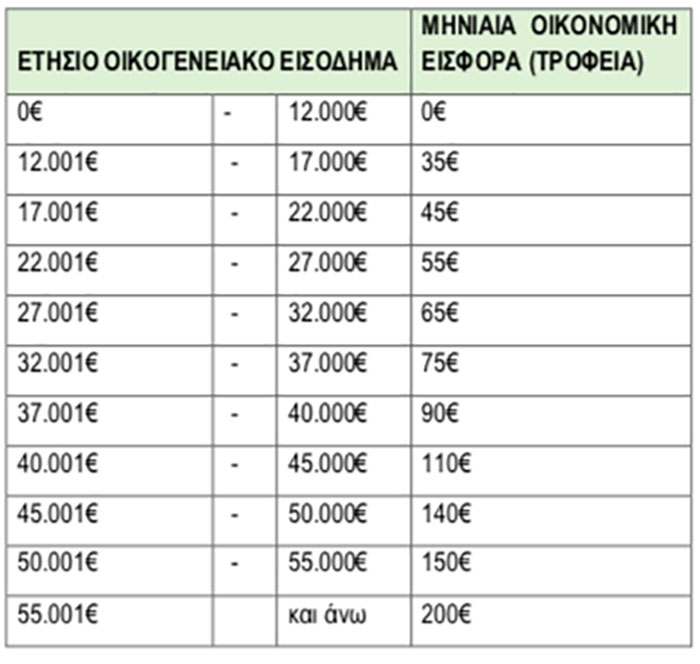 Η καταβολή των τροφείων είναι μηνιαία, υπολογίζεται βάσει του οικογενειακού εισοδήματος και για το πρώτο παιδί ισχύουν τα εξής: