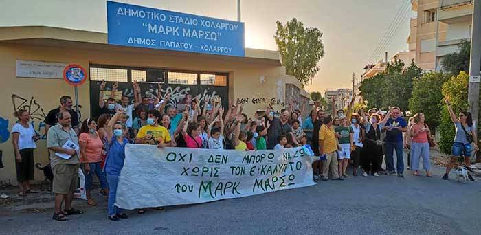 Ηχηρή διαμαρτυρία δημοτών κατά της κοπής του ιστορικού ευκάλυπτου στο γήπεδο Χολαργού