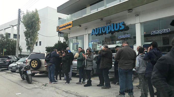 Τεράστιες ουρές έχουν σχηματιστεί από νωρίς το πρωί και στα δύο καταστήματα γνωστής αλυσίδας αξεσουάρ αυτοκινήτων στη Λεωφόρο Μεσογείων. Αποτέλεσμα το μποτιλιάρισμα και ο εκνευρισμός καθώς και η αναζήτηση αλυσίδων σε βενζινάδικα και σούπερ μάρκετ.