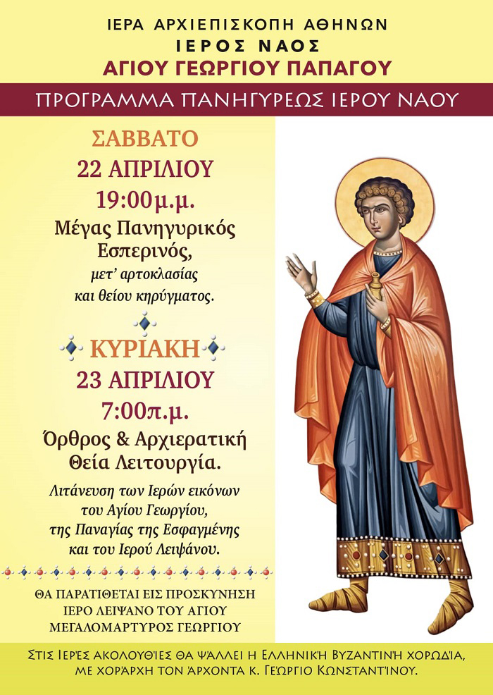 O Ιερός Ναός Αγίου Γεωργίου Παπάγου πανηγυρίζει!
