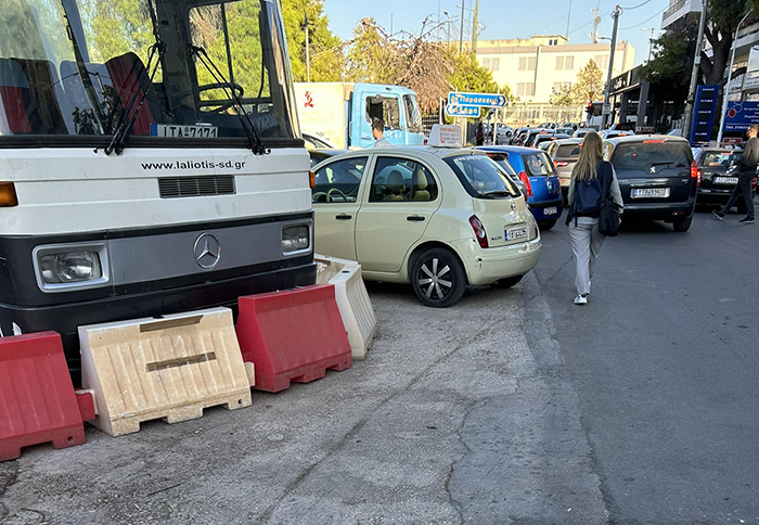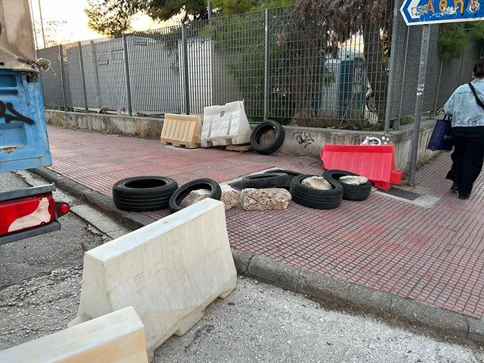 Στο πλαίσιο αυτό, η είσοδος του πρώην πάρκινγκ έχει κλείσει με βαρέα οχήματα δημοσίας χρήσης - όπως φορτηγά και λεωφορεία - τα οποία χρησιμοποιούνται κυρίως για εκπαιδευτικούς σκοπούς. Επίσης, έχουν τοποθετηθεί μπάζα, όπως ξύλα, πόρτες και λάστιχα, τα οποία εμποδίζουν ακόμα περισσότερο την πρόσβαση. Το αποτέλεσμα είναι μια άναρχη κατάληψη του χώρου, που δυσκολεύει την πρόσβαση, όχι μόνο των πεζών, αλλά και των ατόμων με αμαξίδια και καροτσάκια, αναγκάζοντάς τους συχνά να κατεβαίνουν στον δρόμο για να συνεχίσουν τη διαδρομή τους προς το μετρό.