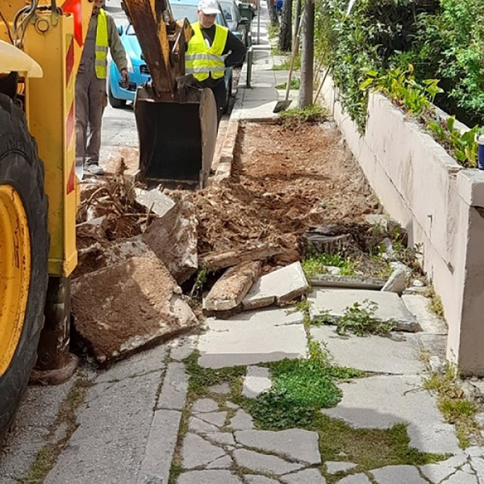 Σε αρκετά σημεία της πόλης, χωρίς να αναφέρονται αναλυτικά οι δρόμοι, ξεκίνησε το έργο εκρίζωσης κορμών, αποξήλωσης των κατεστραμμένων πλακοστρώσεων και αποκατάστασή τους, σύμφωνα με το δελτίο τύπου της δημοτικής αρχής Αποστολόπουλου. Όπου απαιτηθεί, όπως επισημαίνεται, θα επιδιορθωθούν τυχόν φθορές στα φρεάτια και θα κατασκευαστούν κράσπεδα.