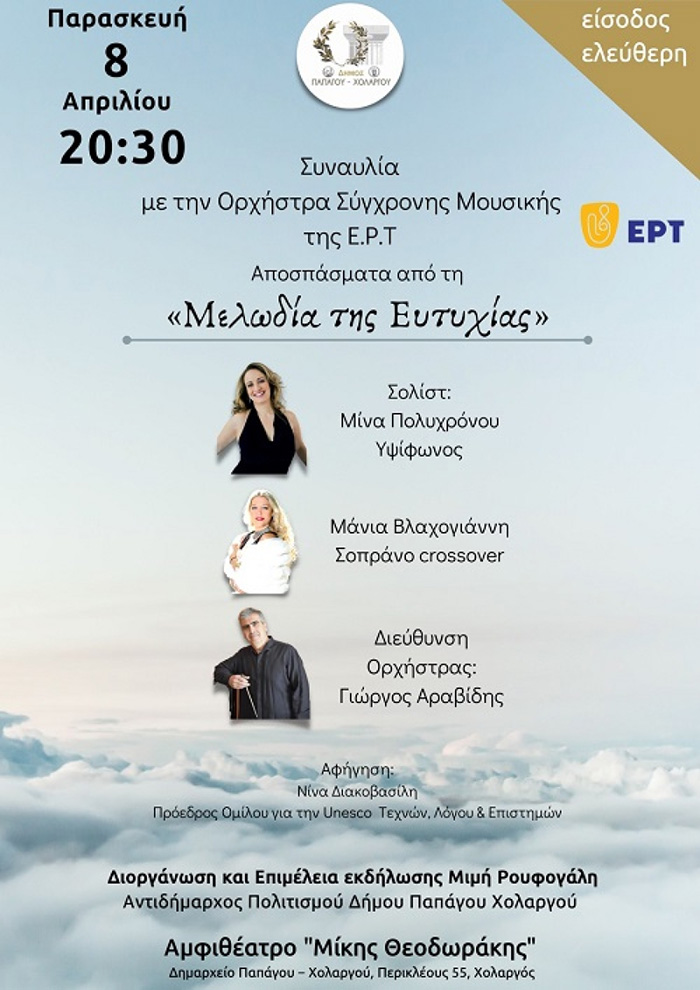 Ο Δήμος Παπάγου-Χολαργού, διοργανώνει συναυλία με την Ορχήστρα Σύγχρονης Μουσικής της Ε.Ρ.Τ που έχει ως θέμα της, αποσπάσματα από το θρυλικό μιούζικαλ « Η Μελωδία της Ευτυχίας ».