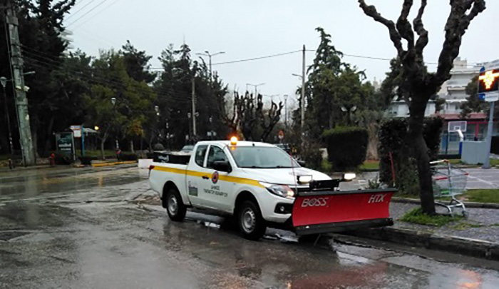 Η αλατιέρα του δήμου ξεκίνησε τη ρίψη αλατιού από τις 04.00, όταν ξεκίνησε η χιονόπτωση. Από τις πρώτες επίσης πρωινές ώρες, 7 οχήματα βρίσκονται σε διαφορετικά σημεία της πόλης, σε ετοιμότητα