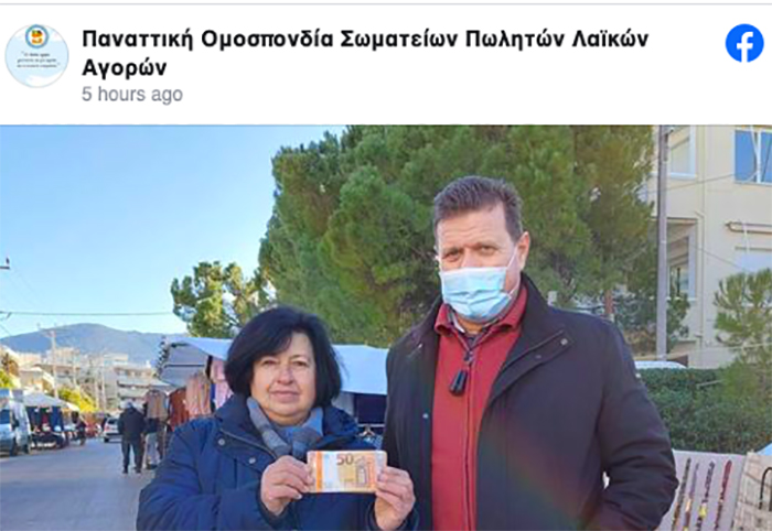 Μια επαγγελματίας πωλήτρια στη λαϊκή αγορά του Παπάγου, έδωσε μαθήματα ανθρωπιάς όταν βρήκε μια δεσμίδα των 5.000 ευρώ, σε χαρτονομίσματα των πενήντα ευρώ, σήμερα Πέμπτη (20.1.2022) το πρωί, καθώς παρέδωσε το χρηματικό ποσό στην αστυνομία.