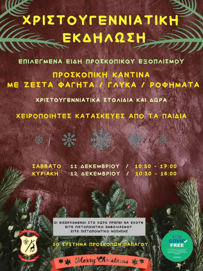 "Μετά από 2 χρόνια, ήρθε ξανά η ώρα για την καθιερωμένη Χριστουγεννιάτικη εκδήλωσή μας. Μπορεί η πανδημία του κορονοϊού να μην έχει κοπάσει ακόμα, ωστόσο θεωρούμε πως οι συνθήκες, αν και οριακές, επιτρέπουν τη διεξαγωγή της, με σκοπό να αλλάξουμε επιτέλους λίγο παραστάσεις και να μπούμε στο εορταστικό κλίμα των Χριστουγέννων, να τα