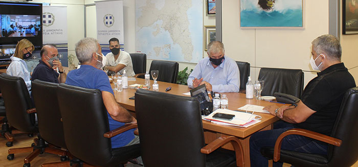 Στο πλαίσιο των συναντήσεων που πραγματοποιεί ο Περιφερειάρχης Αττικής Γ. Πατούλης με αρμόδιους φορείς με στόχο τη δρομολόγηση συνεργειών για την αποτελεσματικότερη προστασία των πνευμόνων πρασίνου της Αττικής, δέχθηκε στα γραφεία της Περιφέρειας τον Πρόεδρο του Συνδέσμου Δήμων για την Προστασία και Ανάπλαση του Πεντελικού (Σ.Π.Α.Π) Β. Σιώμο και τον Πρόεδρο