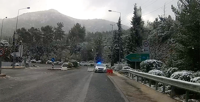 Διακόπηκε η κυκλοφορία λόγω χιονόπτωσης και στον Υμηττό. Ειδικότερα, όπως έγινε γνωστό από την αστυνομία, απαγορεύτηκε η κίνηση των οχημάτων στην οδό Αναστάσεως στου Παπάγου, από το Νεκροταφείο προς Υμηττό και στη λεωφόρο Αλίμου- Κατεχάκη προς Καλοπούλα, από το ύψος του πυροφυλακίου Καισαριανής.