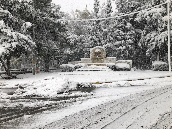 Από χθες το βράδυ στις 21.00 τα οχήματα της πολιτικης προστασίας επιχειρούν, ρίχνοντας αλάτι και καθαριζονντας δρόμους, ωστόσο
