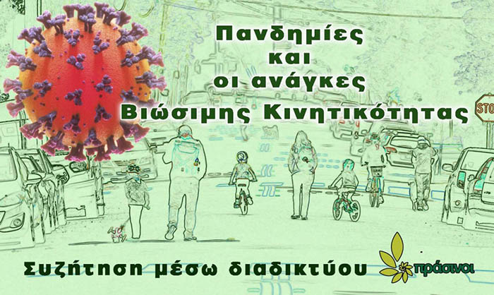 Με τη συμμετοχή του Χολαργιώτη δημοσιογράφου Χάρη Κουγιουμτζόπουλου και του Παπαγιώτη στελέχους της "Πεζή" Νίκου Στάππα, και οι δύο πρώην Δημοτικοί Σύμβουλοι Παπάγου Χολαργού, διοργανώνεται από τους "Πράσινους" διαδικτυακή εκδήλωση-συζήτηση για τους πεζούς, τους ποδηλάτες και τους οικολογικούς τρόπους μετακίνησης στην πόλη την εποχή της πανδημίας, την Κυριακή 31 Ιανουαρίου 2021,