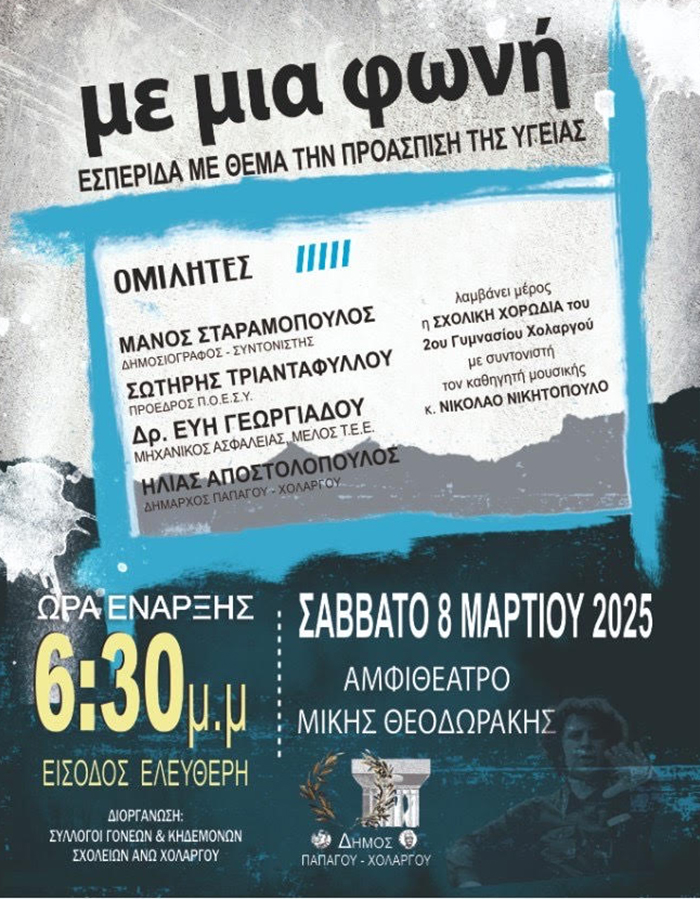 Ο Δήμος Παπάγου-Χολαργού στα πλαίσια της Κοινωνικής Πολιτικής και της Ισότητας των Φύλων, τιμώντας την ημέρα της Γυναίκας για τους αγώνες της ανά τα χρόνια καθώς και την Εθνική Επέτειο της 25ης Μαρτίου διοργανώνει εκδήλωση με θέμα: «Η συμβολή των γυναικών στην Ελληνική Επανάσταση», παρουσιάζοντας ομιλία από την κα. Κατούφα Ευγενία,