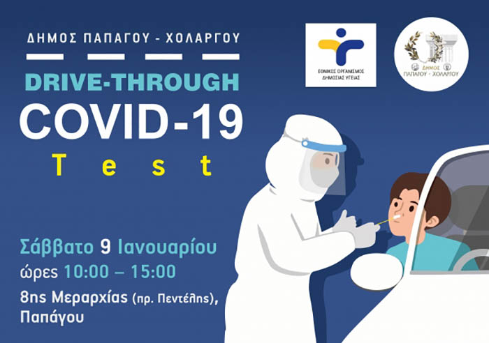 Ο Δήμος Παπάγου - Χολαργού σε συνεργασία με τον Εθνικό Οργανισμό Δημόσιας Υγείας, προχωρά στη διενέργεια drive through rapid tests, δωρεάν για τους κατοίκους της πόλης μας, το Σάββατο 9 Ιανουαρίου 2021 και ώρες 10.00 έως 15.00, στην οδό 8ης Μεραρχίας Παπάγου (πρώην Πεντέλης).