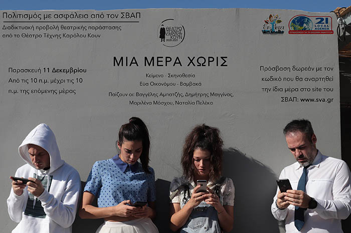 Στο πλαίσιο του Προγράμματος Διαδημοτικής Συνεργασίας «Εν Άστει» και σε συνεργασία με το Θέατρο Τέχνης Καρόλου Κουν θα παρουσιαστεί διαδικτυακά την Παρασκευή 11 Δεκεμβρίουη θεατρική παράσταση «Μια μέρα χωρίς». Η παράσταση θα είναι διαθέσιμη δωρεάν για τους δημότες των Δήμων μελών του ΣΒΑΠ, μέσα στους οποίους είναι και ο Δήμος Παπάγου