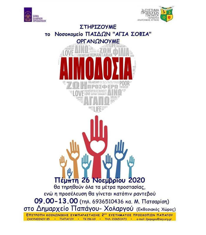 Αυτή τη δύσκολη περίοδο σε μια έμπρακτη κίνηση αλληλεγγύης το 2ο Σύστημα Προσκόπων Παπάγου διοργανώνει δράση εθελοντικής αιμοδοσίας με στόχο την στήριξη του Νοσοκομείου Παίδων “Αγία Σοφία”.