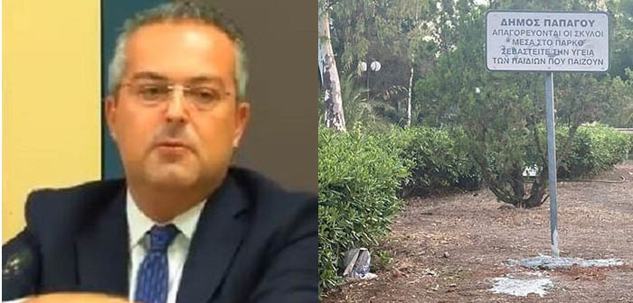Η ταμπέλα που απαγορεύει την είσοδο στους σκύλους στο παρκάκι της Παναγιώτου στου Παπάγου και έχει προκαλέσει τις έντονες αντιδράσεις των φιλόζωων εντός αλλά και εκτός του Δήμου Παπάγου Χολαργού παραμένει ακόμη στη θέση της, για την ακρίβεια στις θέσεις τους, αφού είναι τρεις όσες και οι πλευρές του οικοπέδου...