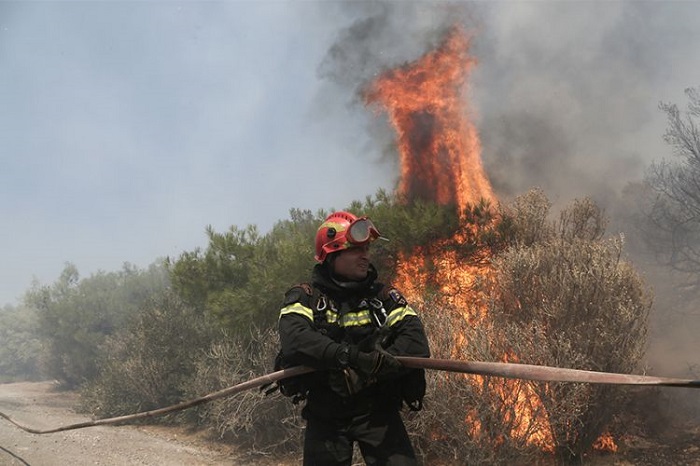 Συναγερμός έχει σημάνει στην Πυροσβεστική με τρία ελικόπτερα και δύο αεροσκάφη να επιχειρούν αυτή τη στιγμή, 45 πυροσβέστες 12 οχήματα και τους εθελοντές της ΔΑΠΑΧΟ παρόντες από την