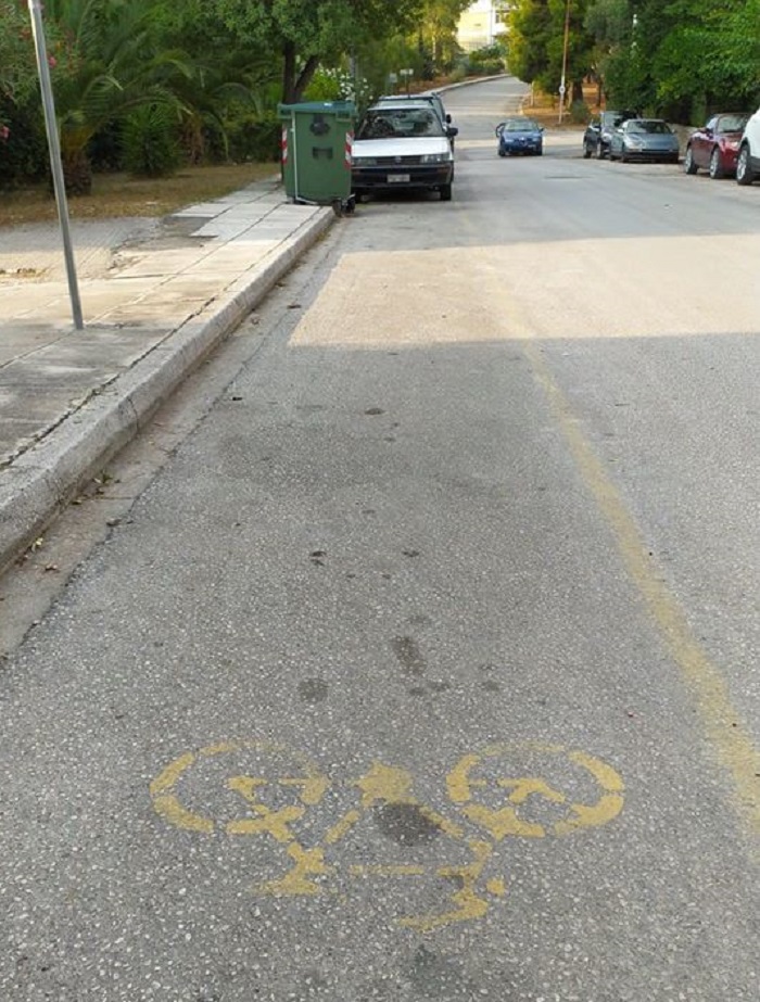 Ένας ποδηλατόδρομος που φτιάχτηκε και αφέθηκε στην τύχη του. Που πολύ γρήγορα τον κατέλαβαν οι ιδιοκτήτες Ι.Χ. και όχι