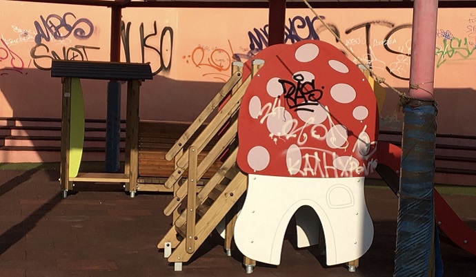 Χρειάστηκαν μόνο μερικές... ώρες για να βανδαλιστούν τα νέα όργανα που τοποθετήκαν στους Δημοτικούς Παιδικούς Σταθμούς επί της 17ης Νοεμβρίου.