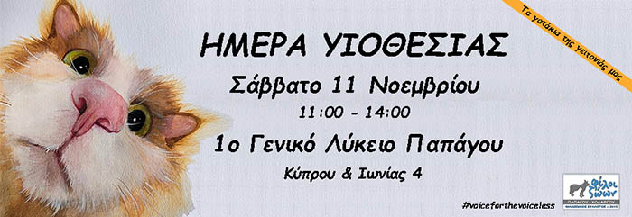 Στο φιλόξενο προαύλιο του 1ου ΓΕΛ Παπάγου, το Σάββατο 11 Νοεμβρίου (από τις 11:00 έως τις 14:00) θα είναι μία μέρα ειναι αποκλειστικά αφιερωμένη στα αδέσποτα