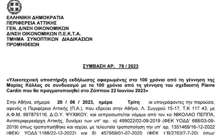 Σφοδρή επίθεση δέχτηκε και πάλι ο Περιφερειάρχης Αττικής κ. Πατούλης από σύσσωμη την αντιπολίτευση καθώς ενέκρινε δαπάνη 28.500 € για την διοργάνωση επίδειξης μόδας του Pierre Cardin.