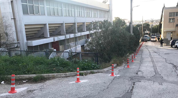 Με δύο σειρές από κολωνάκια φαίνεται να αντιμετωπίζει η δημοτική αρχή το κυκλοφοριακό κομφούζιο, που δημιουργείται κάθε απόγευμα και όλα τα Σαββατοκύριακα στο δρόμο που διασχίζει το αθλητικό κέντρο του Τσακού.