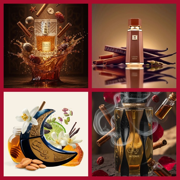 Οι αρωματικοί οίκοι των Εμιράτων μας προτείνουν αρώματα κυρίως unisex με νότες από κανέλα, κάρδαμο, χουρμάδες, κονιάκ, μπαχαρικά και αρωματικά ξύλα τυλιγμένα σε βανίλια και κεχριμπάρι. Η ένταση και η διάρκειά τους είναι μεγάλη και αφήνουν έντονο το αποτύπωμα στον χώρο. Η αίσθησή τους δε αποτελεί μια αίσθηση θερμής αγκαλιάς.