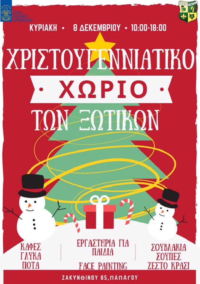 Όπως κάθε χρόνο έτσι και φέτος, το 2ο Σύστημα Προσκόπων Παπάγου φέρνει τα Χριστούγεννα πιο νωρίς! Το χωριό των ξωτικών στήνεται ήδη πυρετωδώς και μας περιμένει όλους με μουσική, φαγητό, γλυκά, ποτά, ζεστά ροφήματα και την πιο χριστουγεννιάτικη διάθεση! Σημειώστε αυτή την Κυριακή 8 Δεκεμβρίου 2019 από τις 10πμ